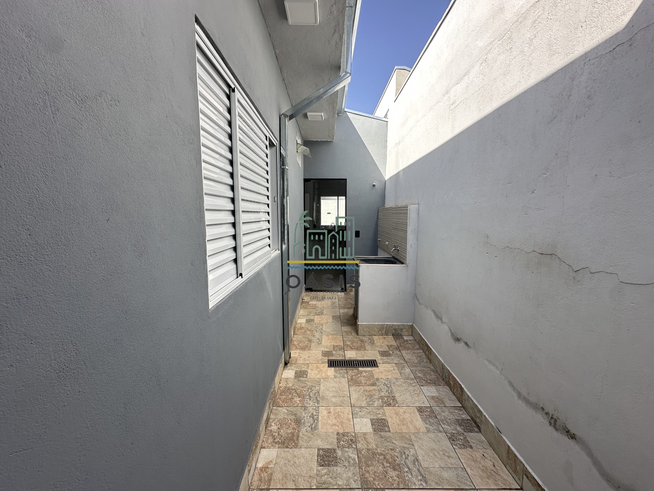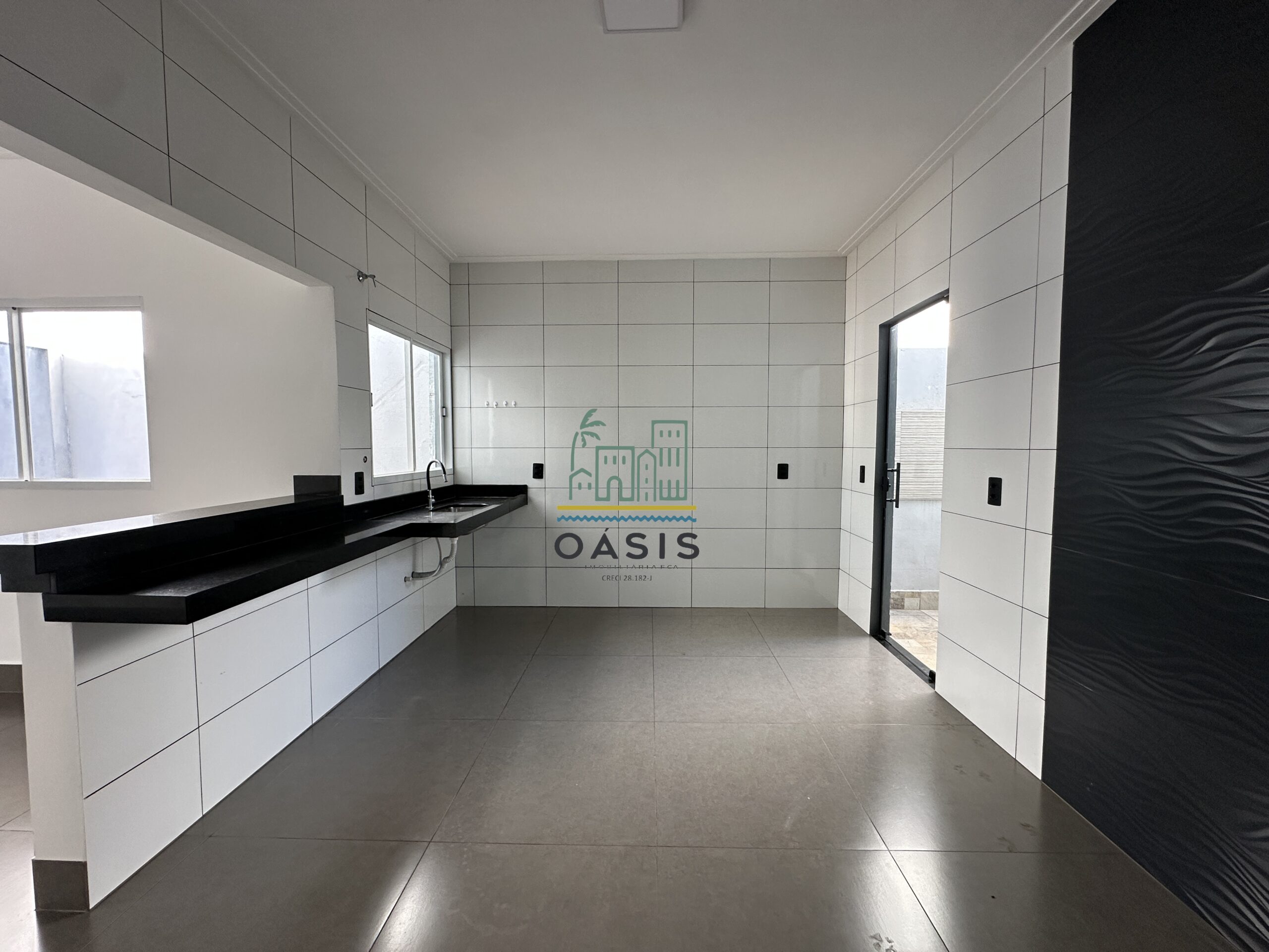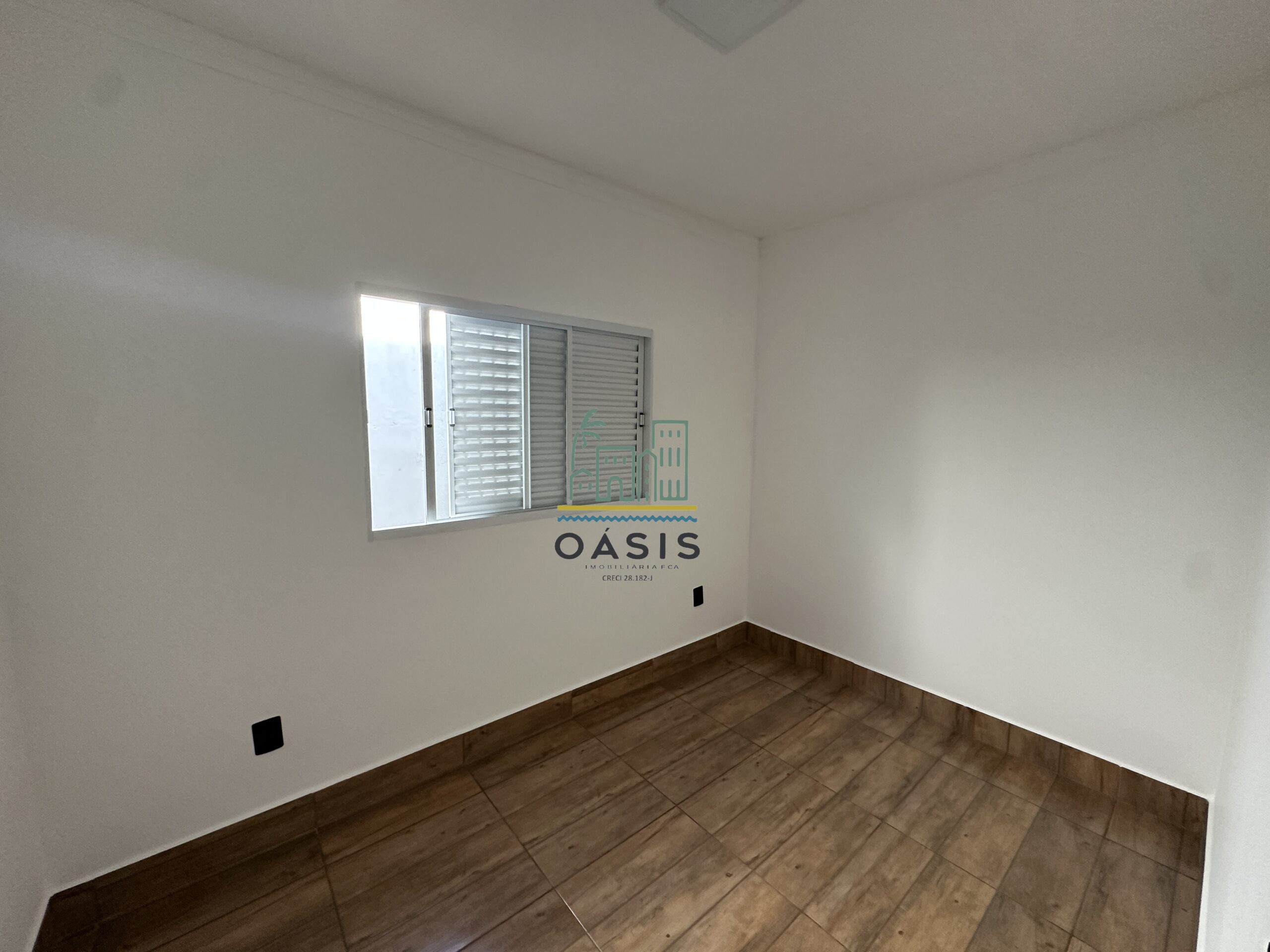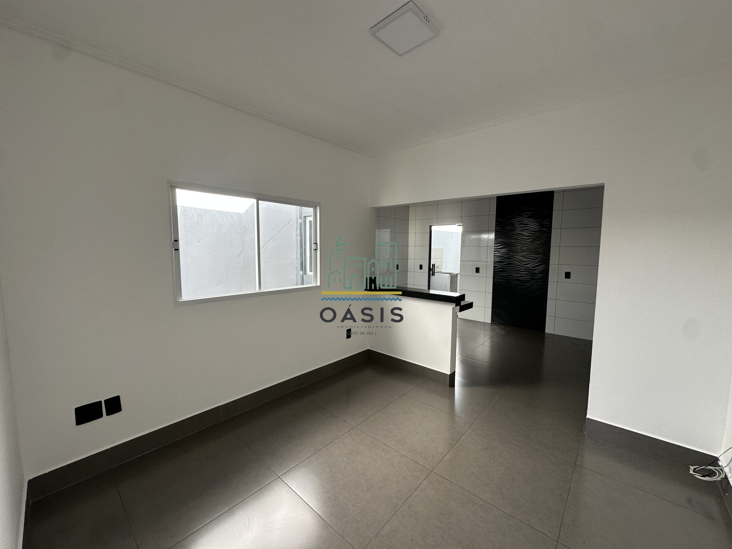 Aluga casa com 02 dormitórios, sala, cozinha, banheiro socia, área de serviço e 02 vagas de garagem.